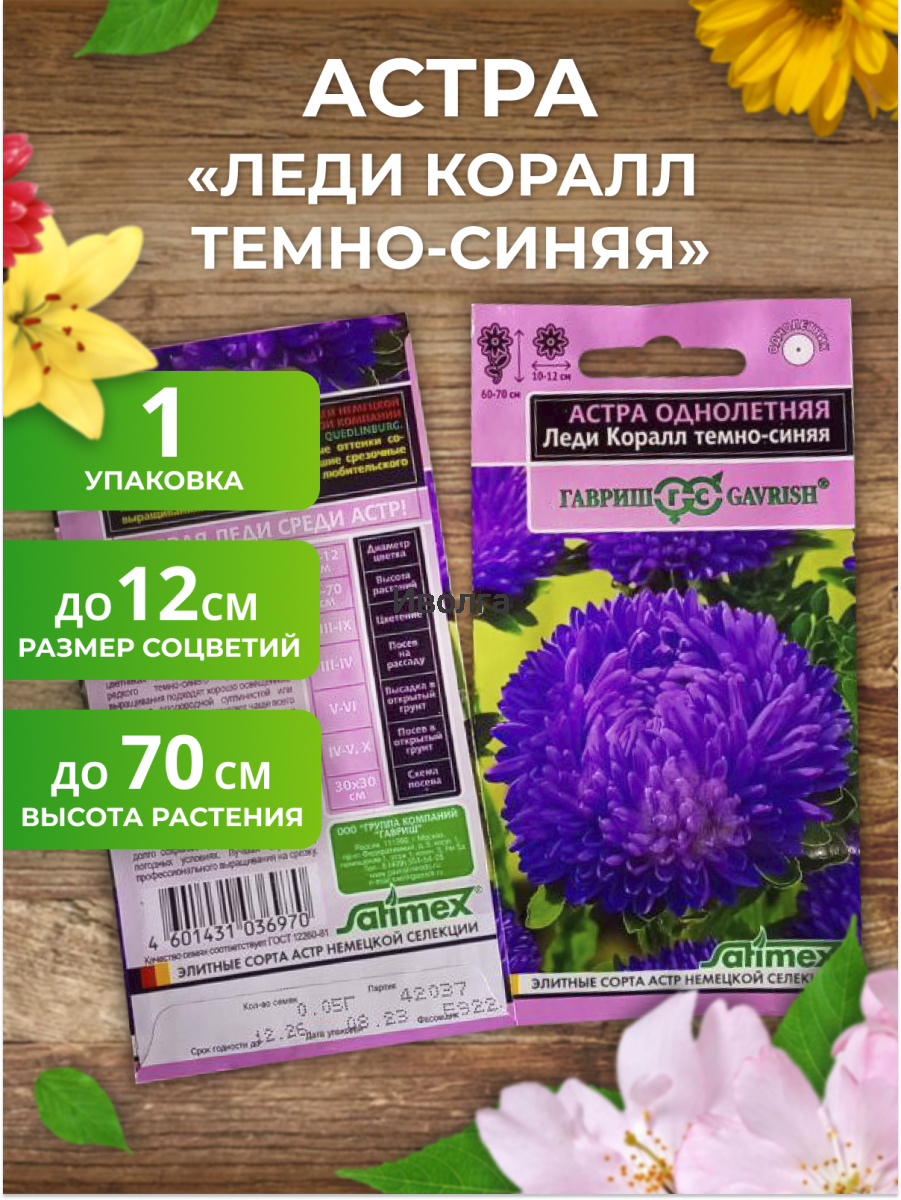 Леди Коралл темно-синяя - роскошная серия высоких астр (60-70 см) с пирамидальной формой куста. Многочисленные плотно-махровые розовидные соцветия диаметром 10-12 см на прочных цветоносах долго сохраняют свежесть в цветниках и букетах.