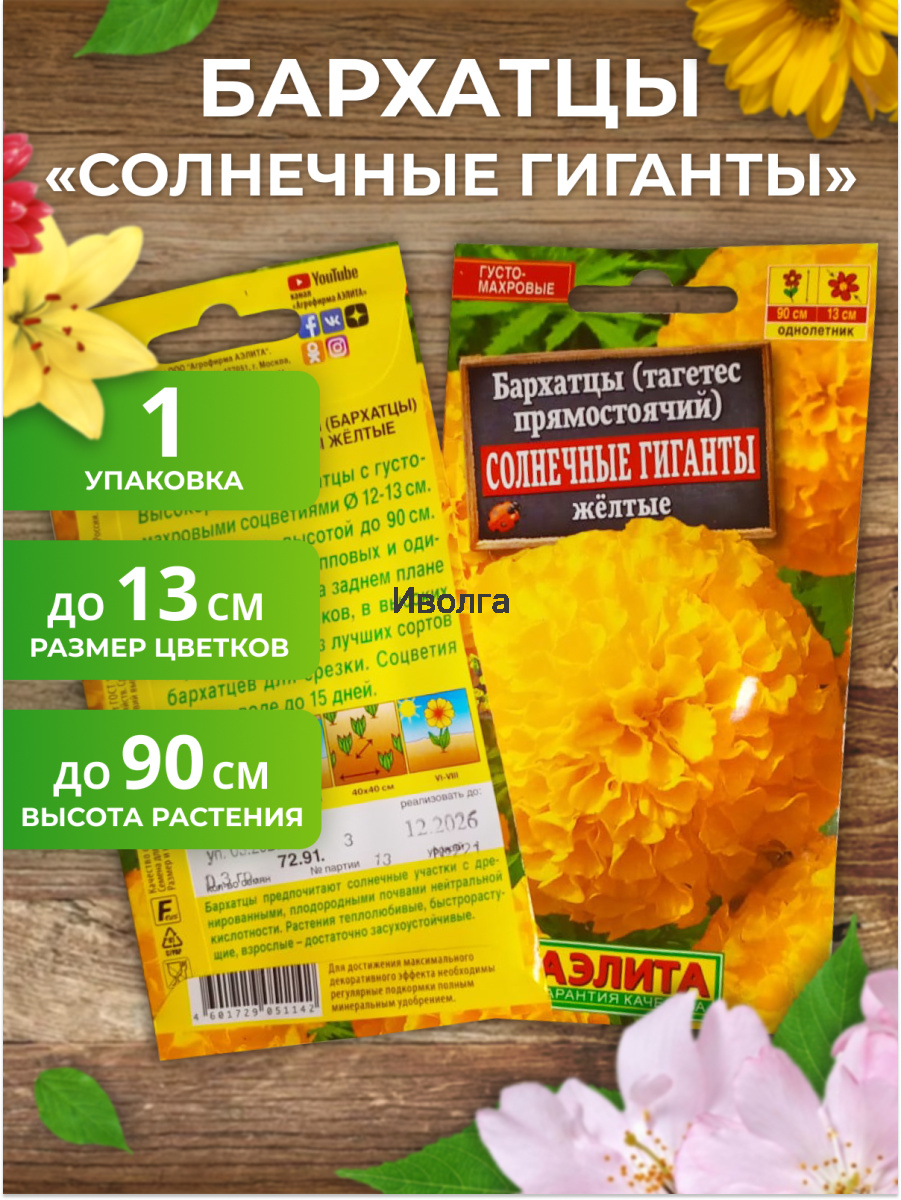 1. Бархатцы (тагетес прямостоячий) "Солнечные гиганты" желтые  — 1 шт.